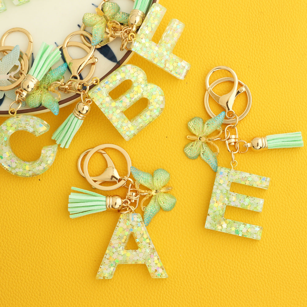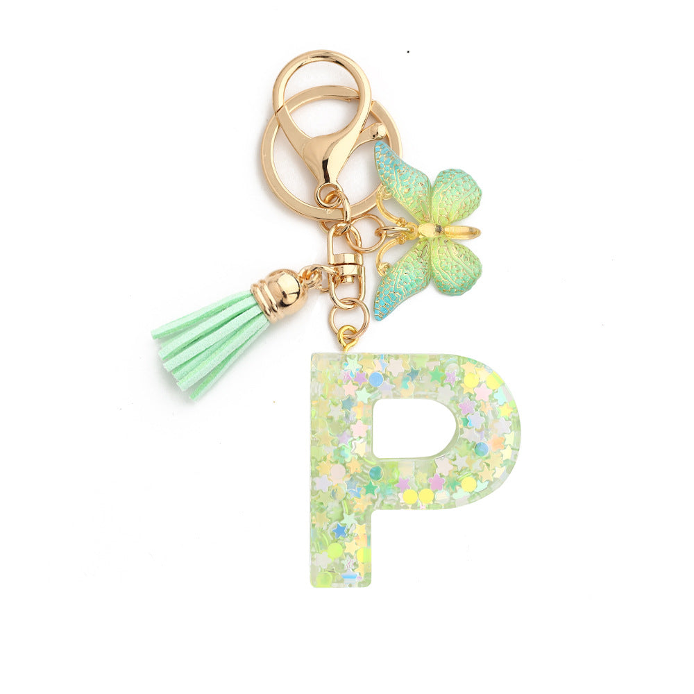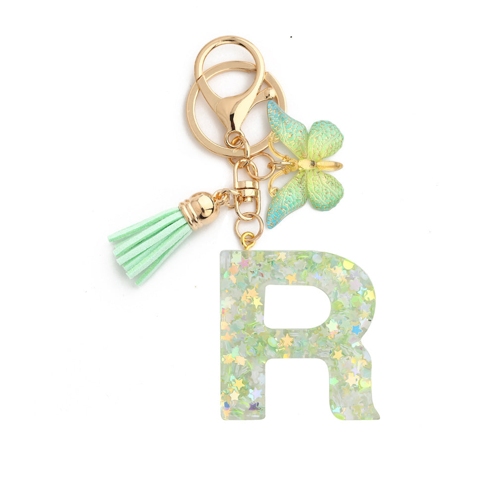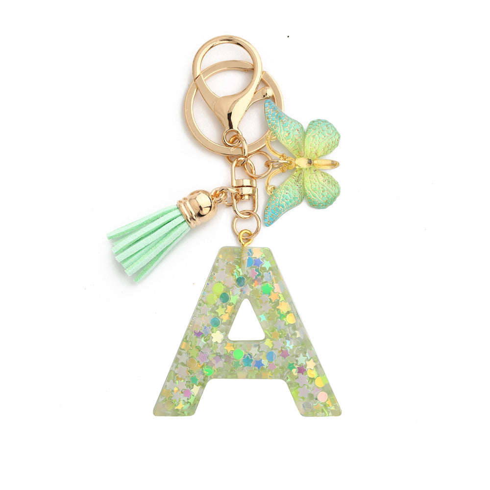 Green shell stone letter resin drop glue 26 English spot men's pendant Europe and the United States popular key chain