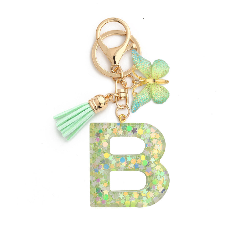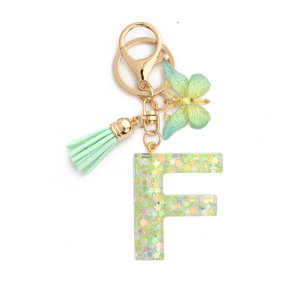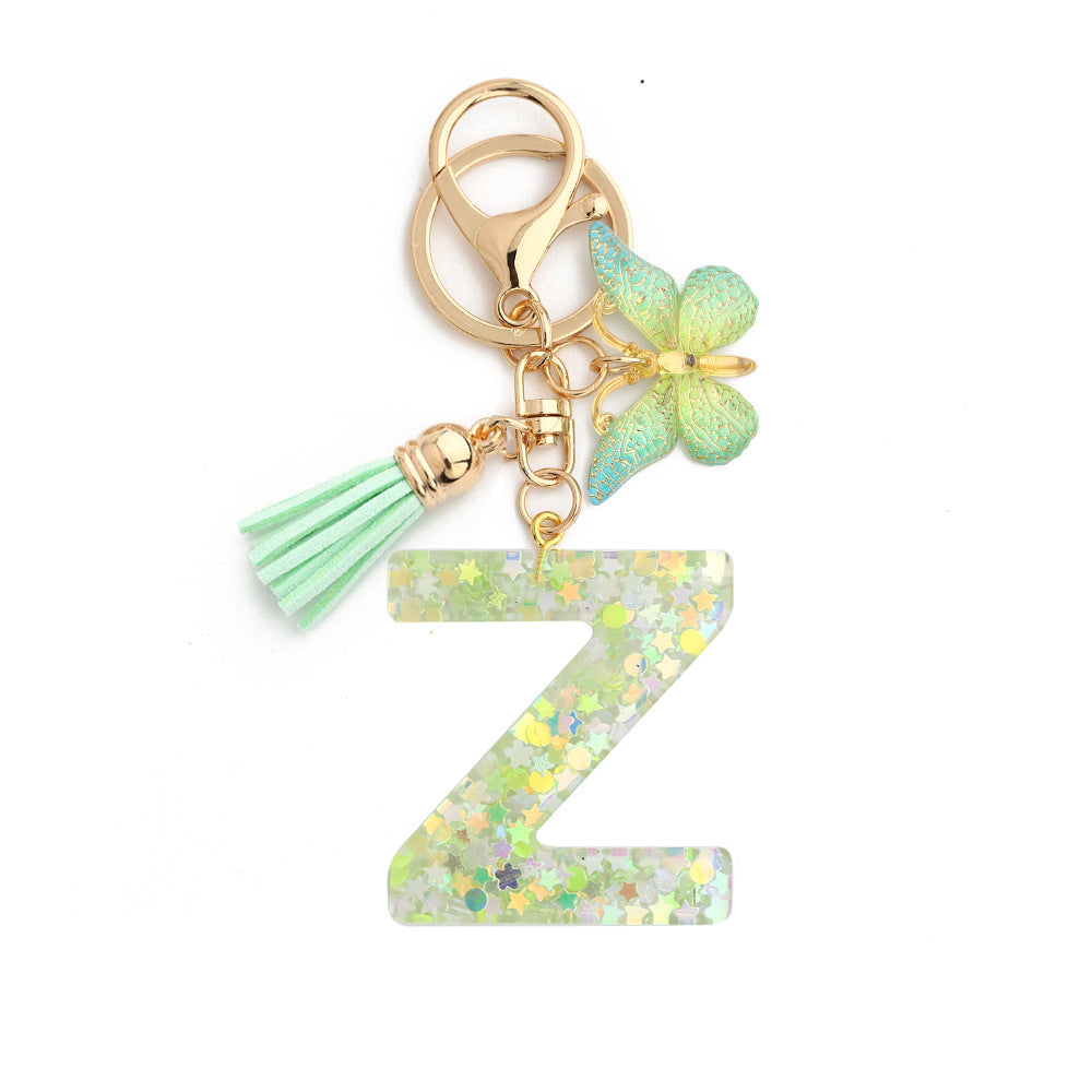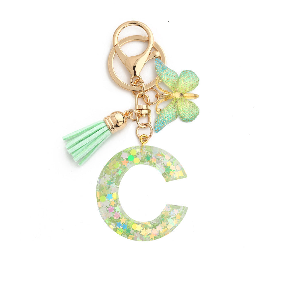 Green shell stone letter resin drop glue 26 English spot men's pendant Europe and the United States popular key chain