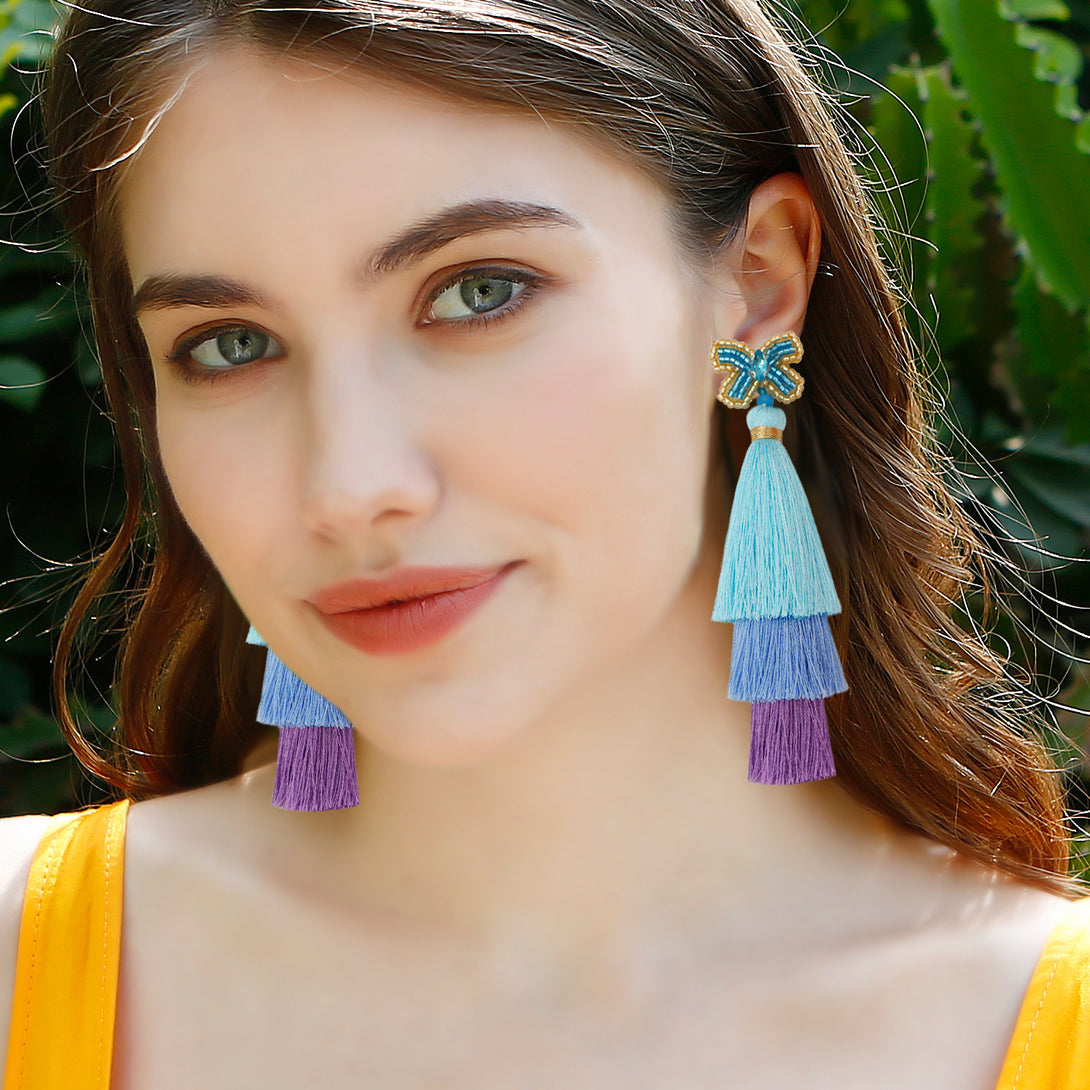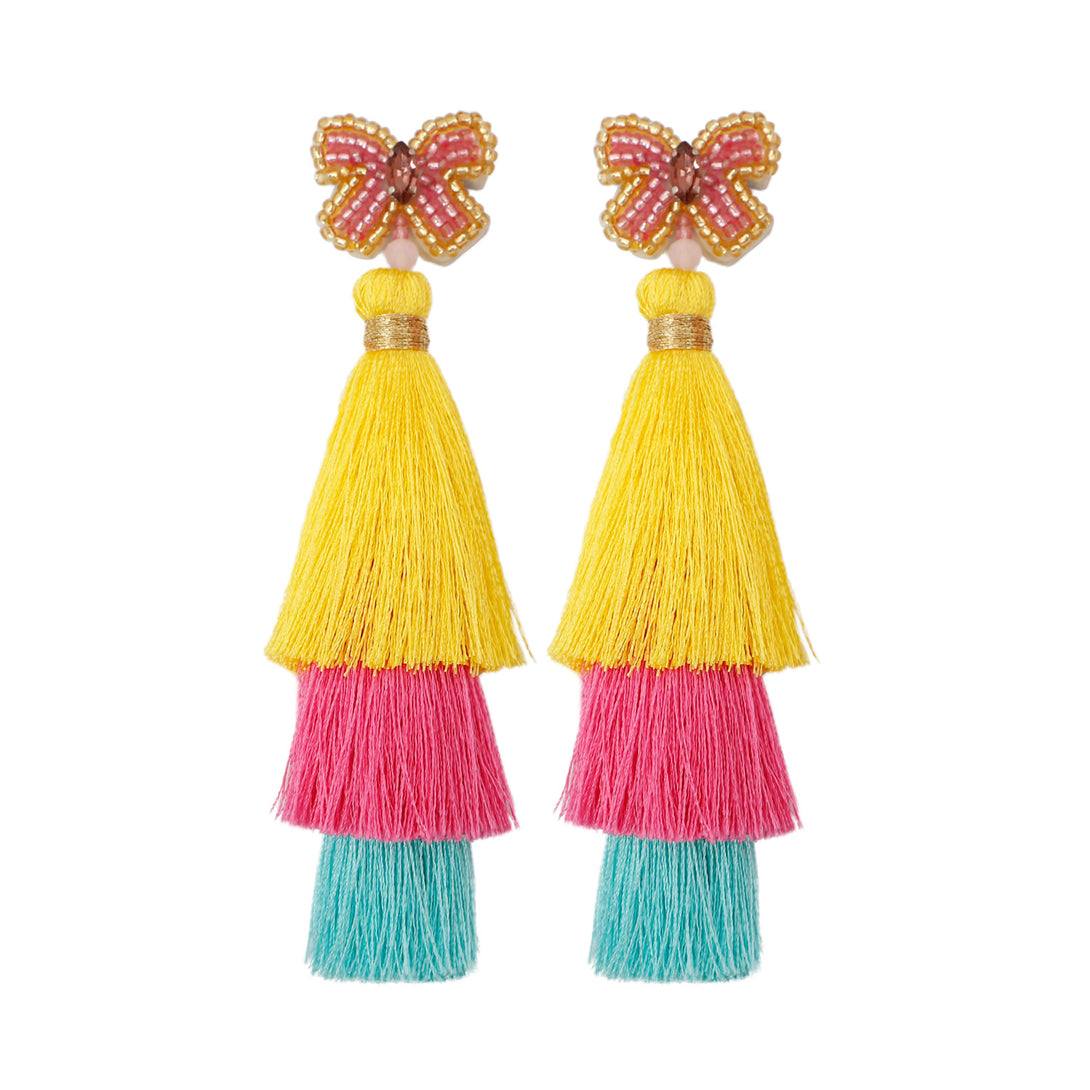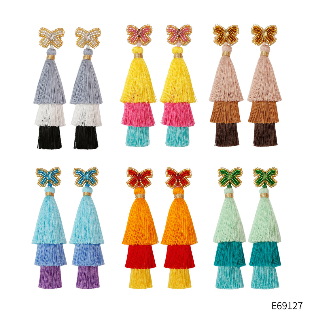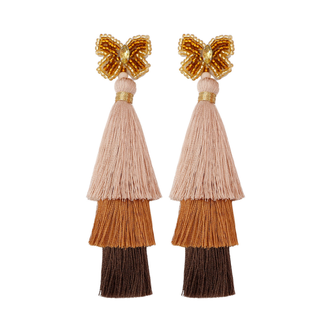 Peppermint Mambo Handmade beaded butterfly rice bead earrings Bohemian DIY woven long exaggerated fringe earrings