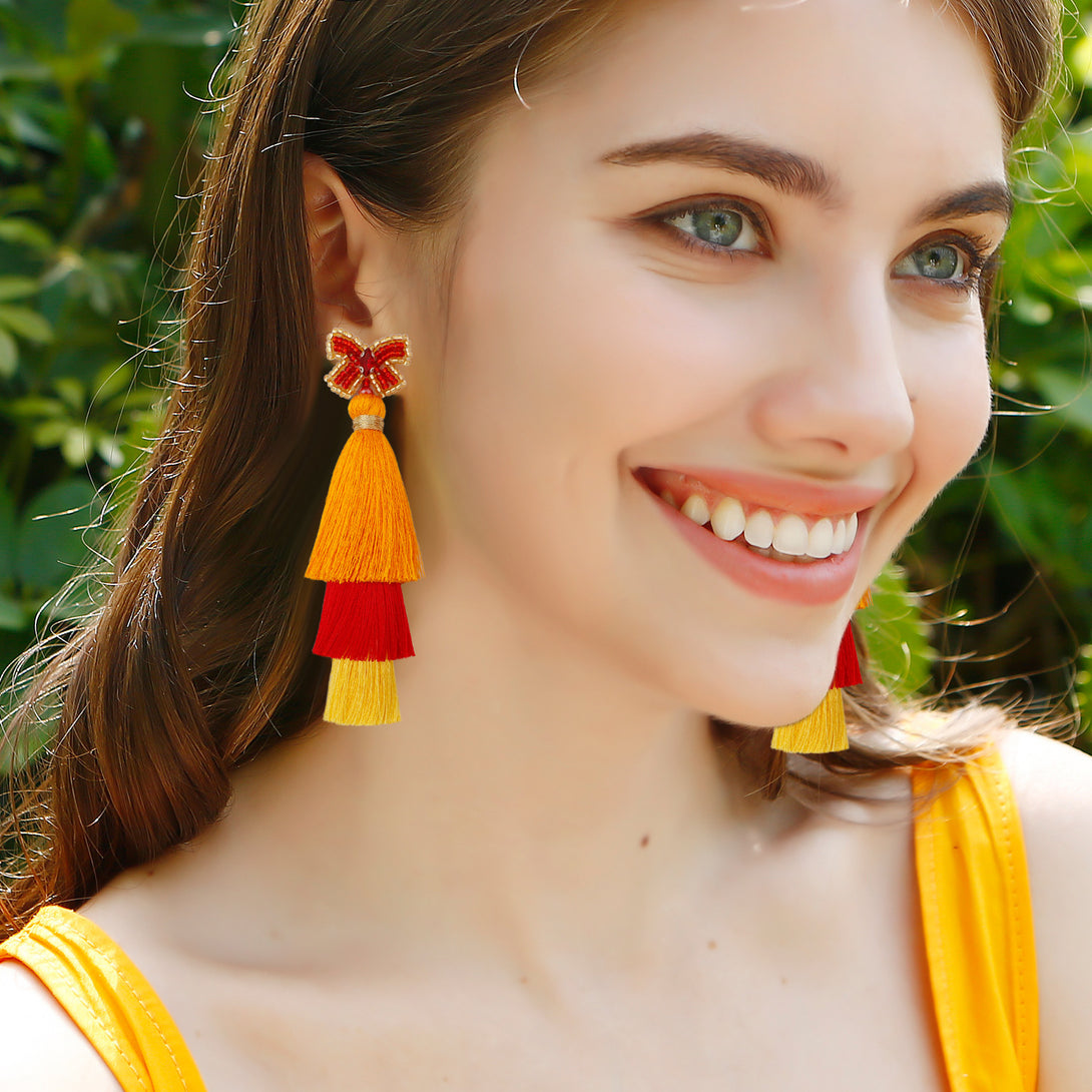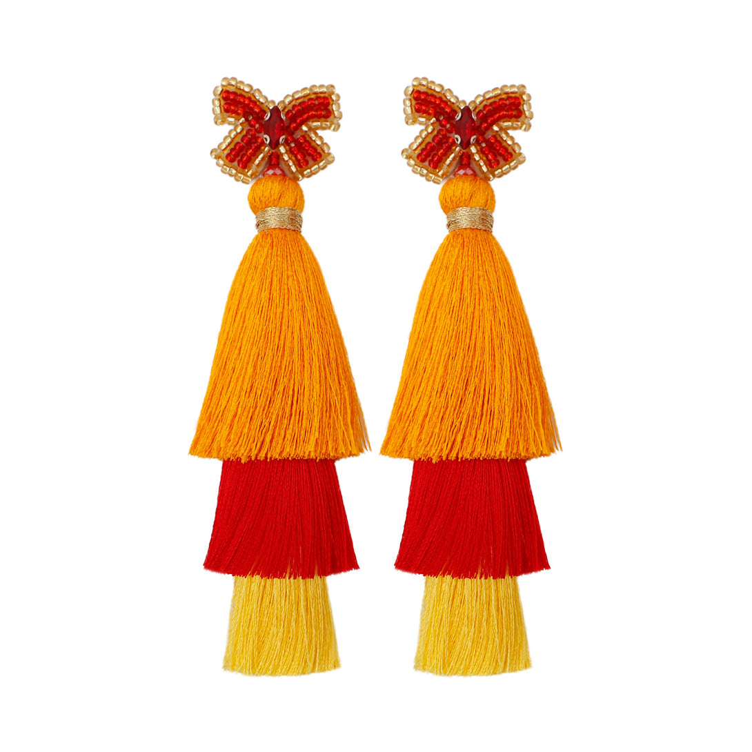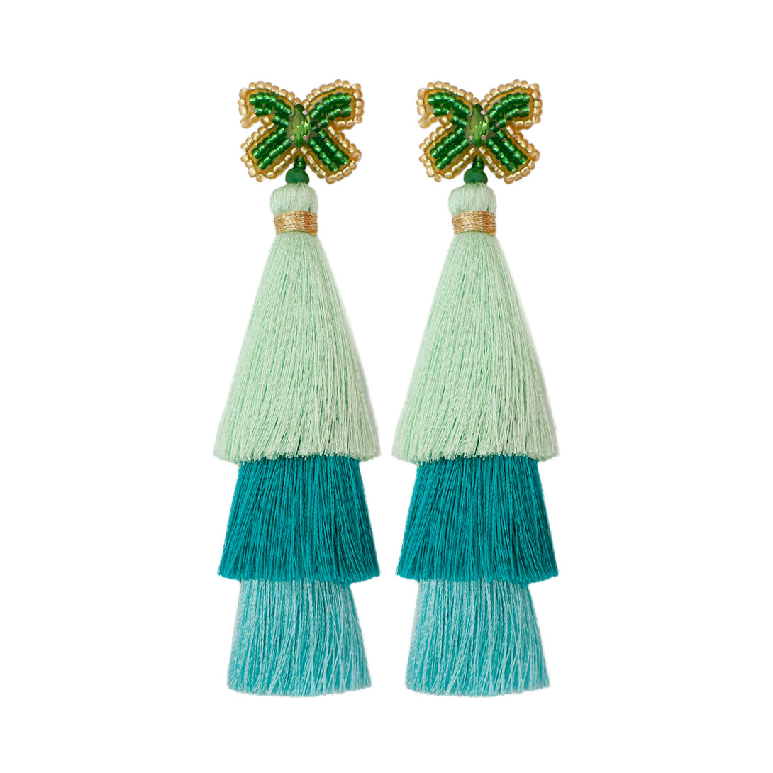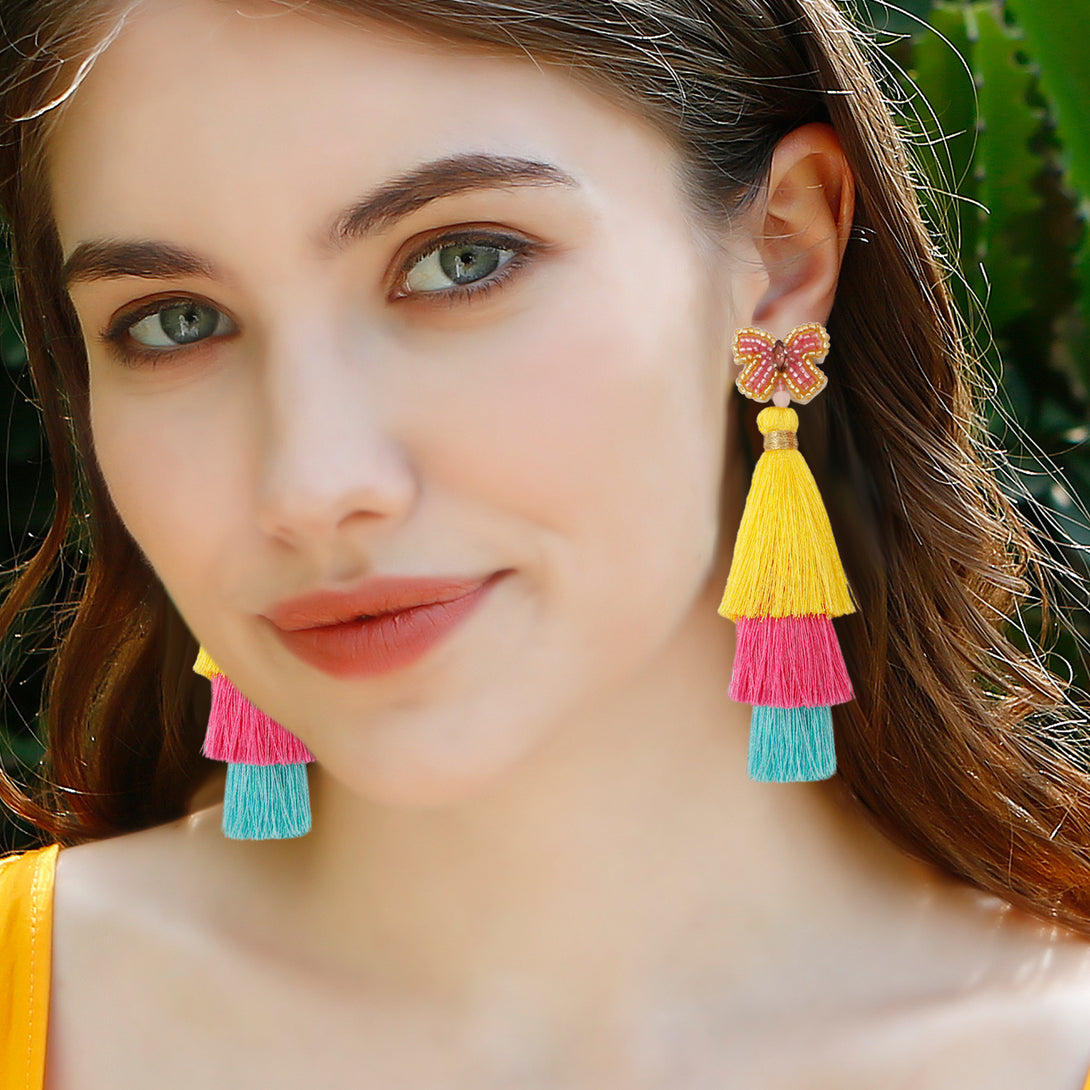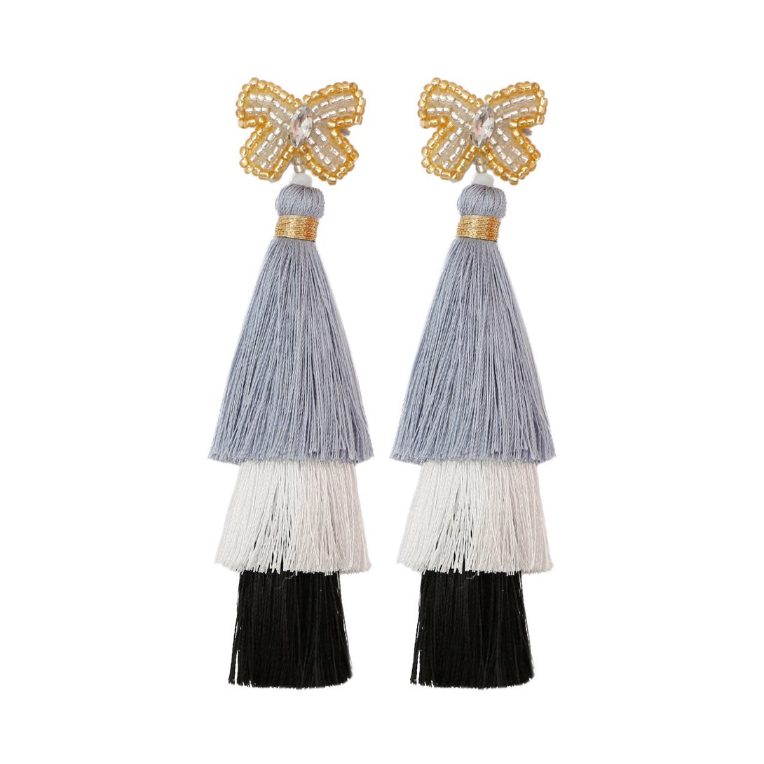 Peppermint Mambo Handmade beaded butterfly rice bead earrings Bohemian DIY woven long exaggerated fringe earrings