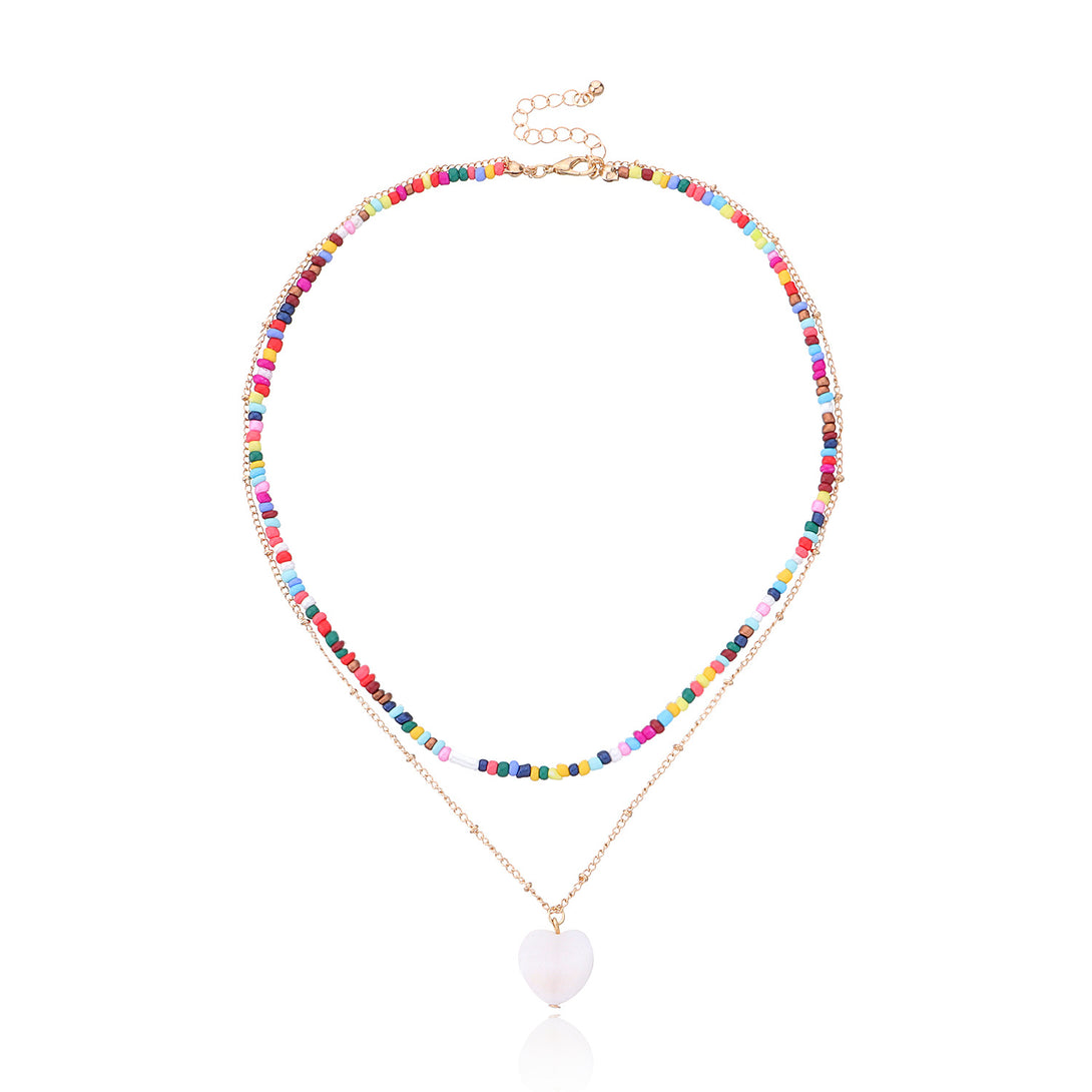 Shell necklace women's double layer everything personalized handmade collar Fashion color rice beads love
