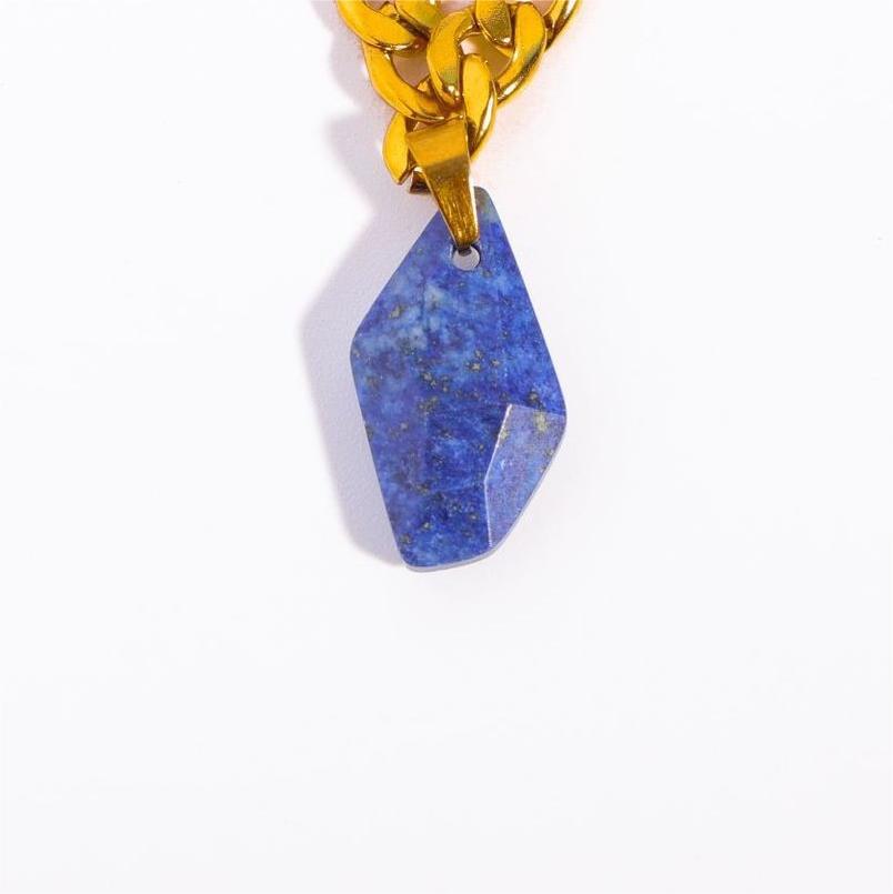 Titanium steel American high Zan new natural stone lapis Lazuli heavy industry necklace pendant DIY high color plated 18K gold